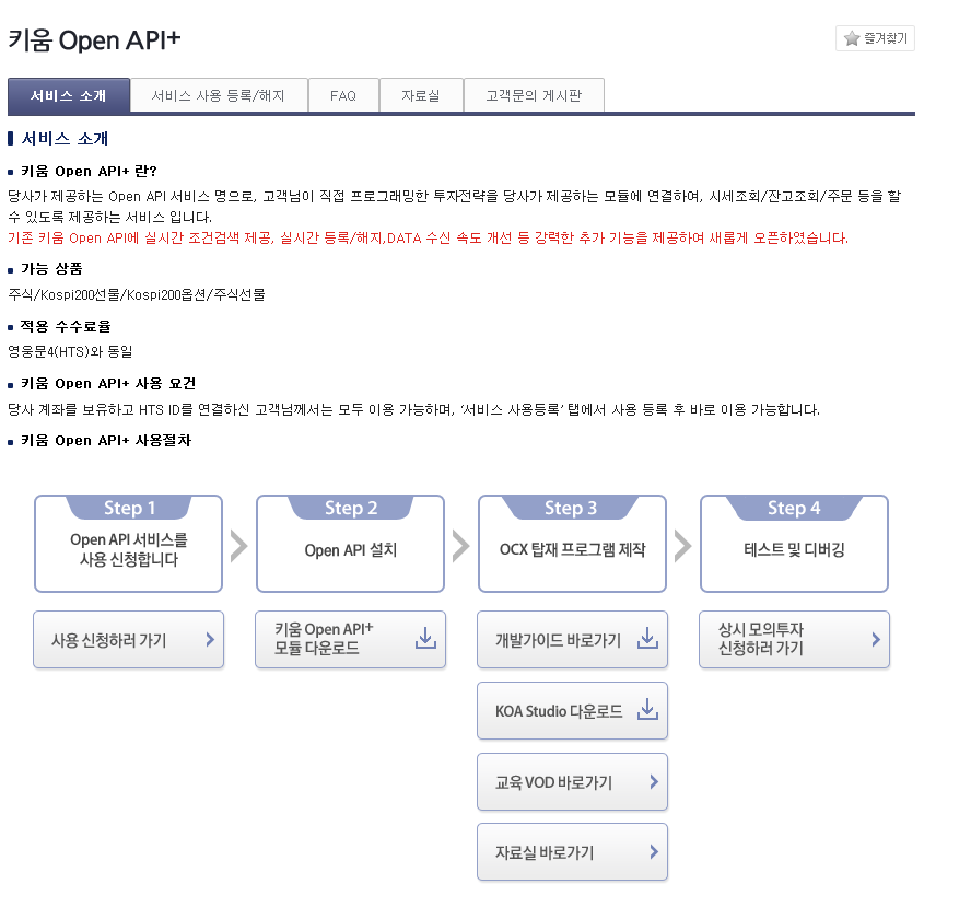 설치하는 동안 키움 증권 로그인 후 사용 신청 및 OPEN API 설치